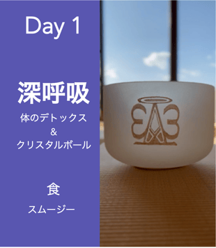 1日目は、深い呼吸とクリスタルボールの振動による体のデトックスをしっかりと行います。