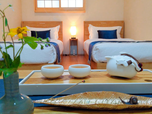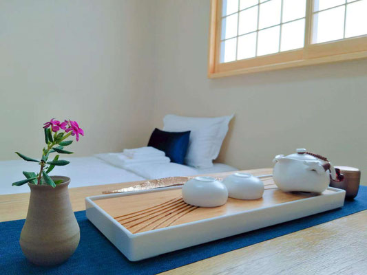 それぞれのお部屋には(各プログラムで提供されていれる)禅茶や、お香などがセッティングされております。活動後もお部屋の中でゆっくりとお楽しみください。