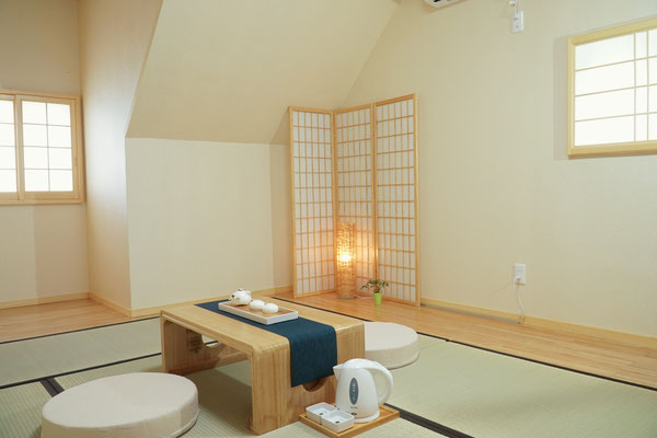 座禅、瞑想、ヨガ、セミナー等を行います。フロアは琉球畳を使用しており、ヨガや瞑想の際にも心地よい時間を過ごせるような空間となっております。 ...more